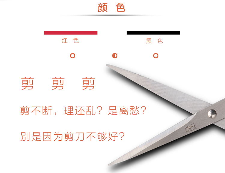 “deli/得力”No.33215 剪刀 單把裝(紅黑色隨機(jī)180mm辦公生活家用中號剪子手工剪紙刀辦公用品)