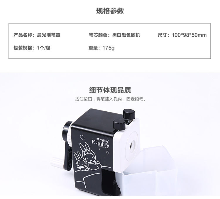 “M&G/晨光”FPS90608 削筆器 單個裝(黑白色米菲系列學(xué)生鉛筆削筆機(jī)/卷筆刀/轉(zhuǎn)筆刀學(xué)生文具)