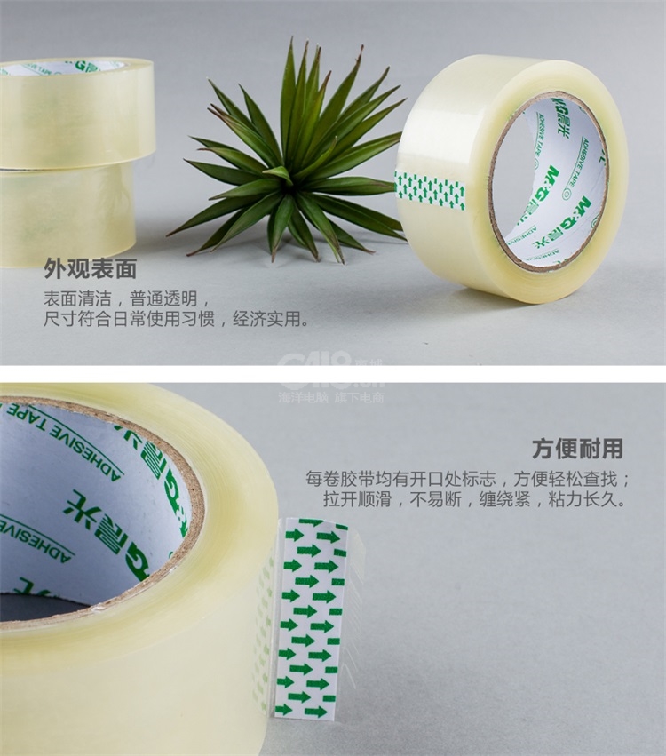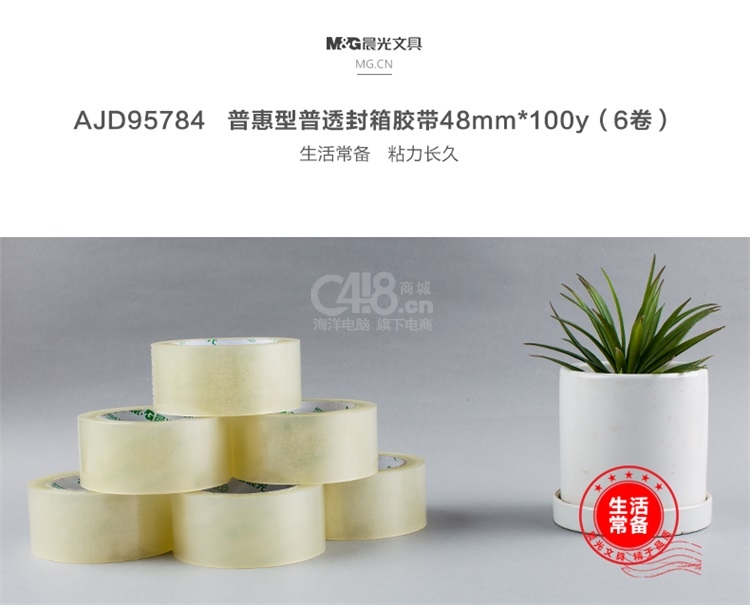 “M&G/晨光”AJD95784 封箱膠帶 單卷裝(普惠普透膠布打包不易斷裂辦公快遞48mm*100y 6卷/筒)