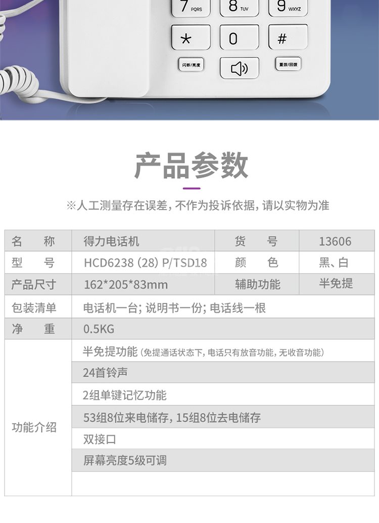 電話機(jī)*1,說明書*1,保修卡*1