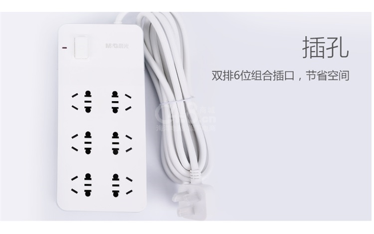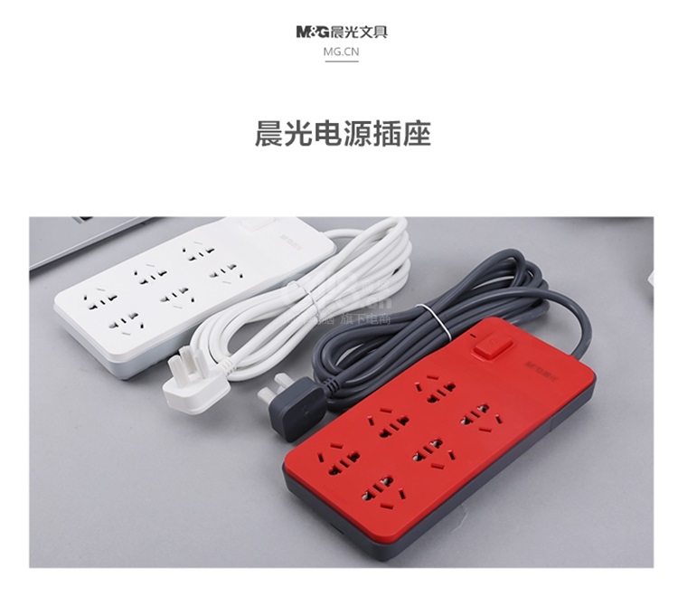 “M&G/晨光”AEA98651 插座 單個(gè)裝(混色6位組合孔線長3米插線板插排排插接線板拖線板)