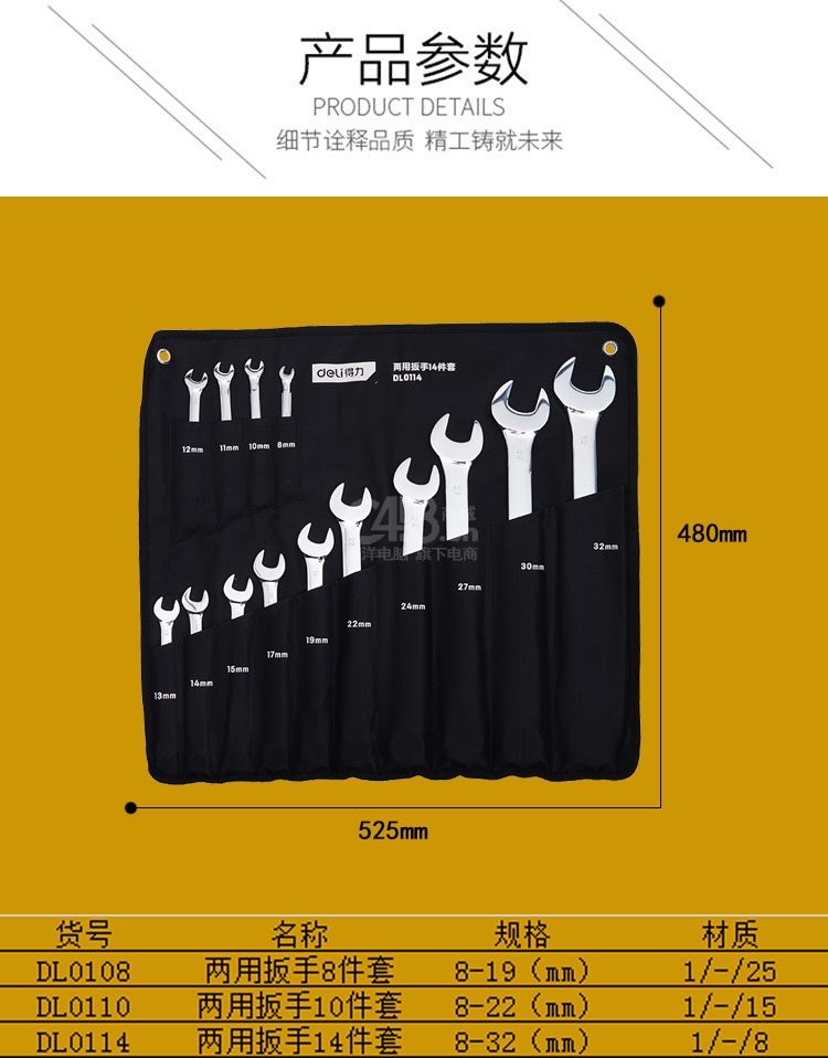“deli/得力”DL0114 兩用扳手14件套 單套裝(銀色開口梅花扳手)