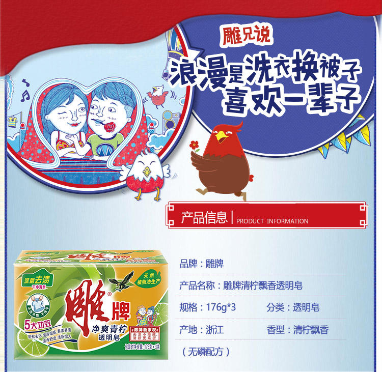 | 品牌: | 雕牌 | 型號: | 凈爽青檸 176克*3 | 產(chǎn)地: | 浙江省麗水市 |