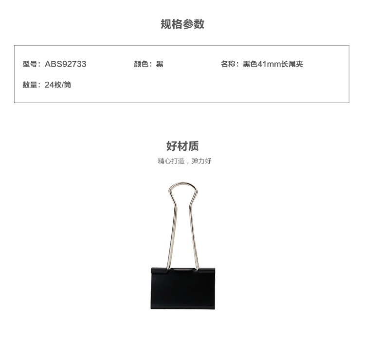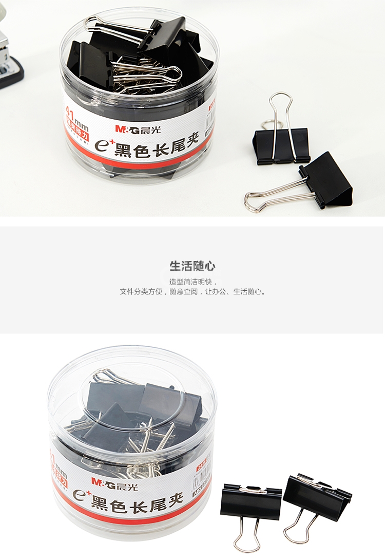 晨光(M&G)Eplus黑色24枚41mm長(zhǎng)尾夾ABS92733