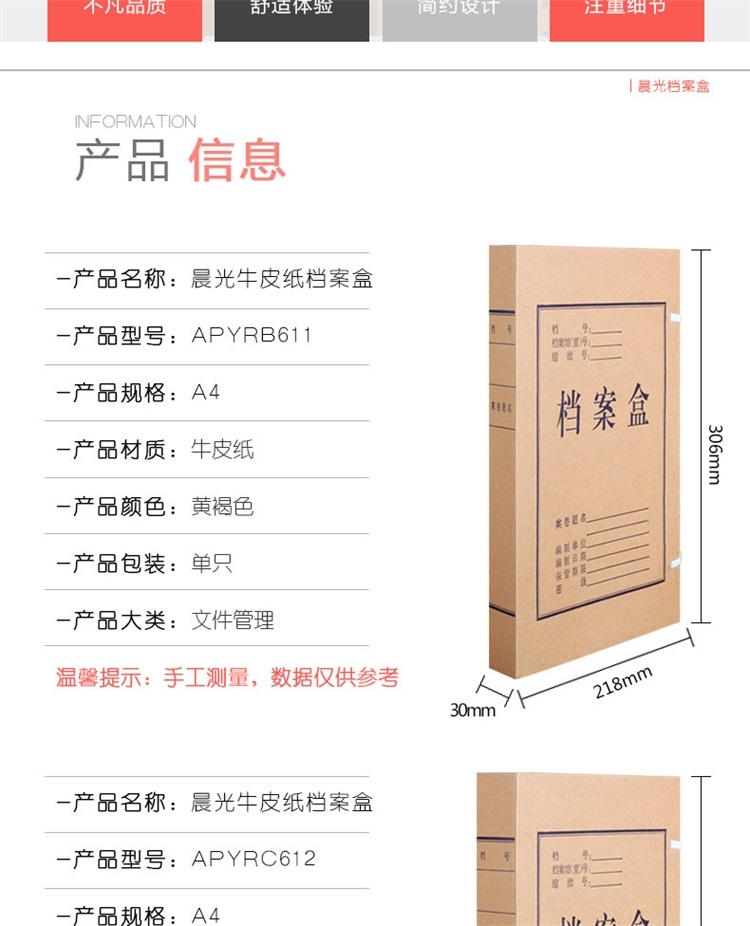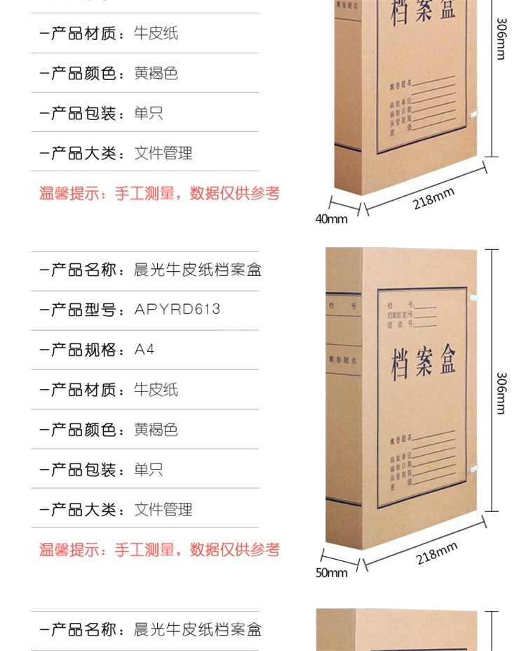 “M&G/晨光”APYRC612 檔案盒 單個裝(黃褐色4cm背寬A4牛皮紙文件盒加厚紙質文件卷宗資料盒會計憑證盒10個/組APYRC61200)