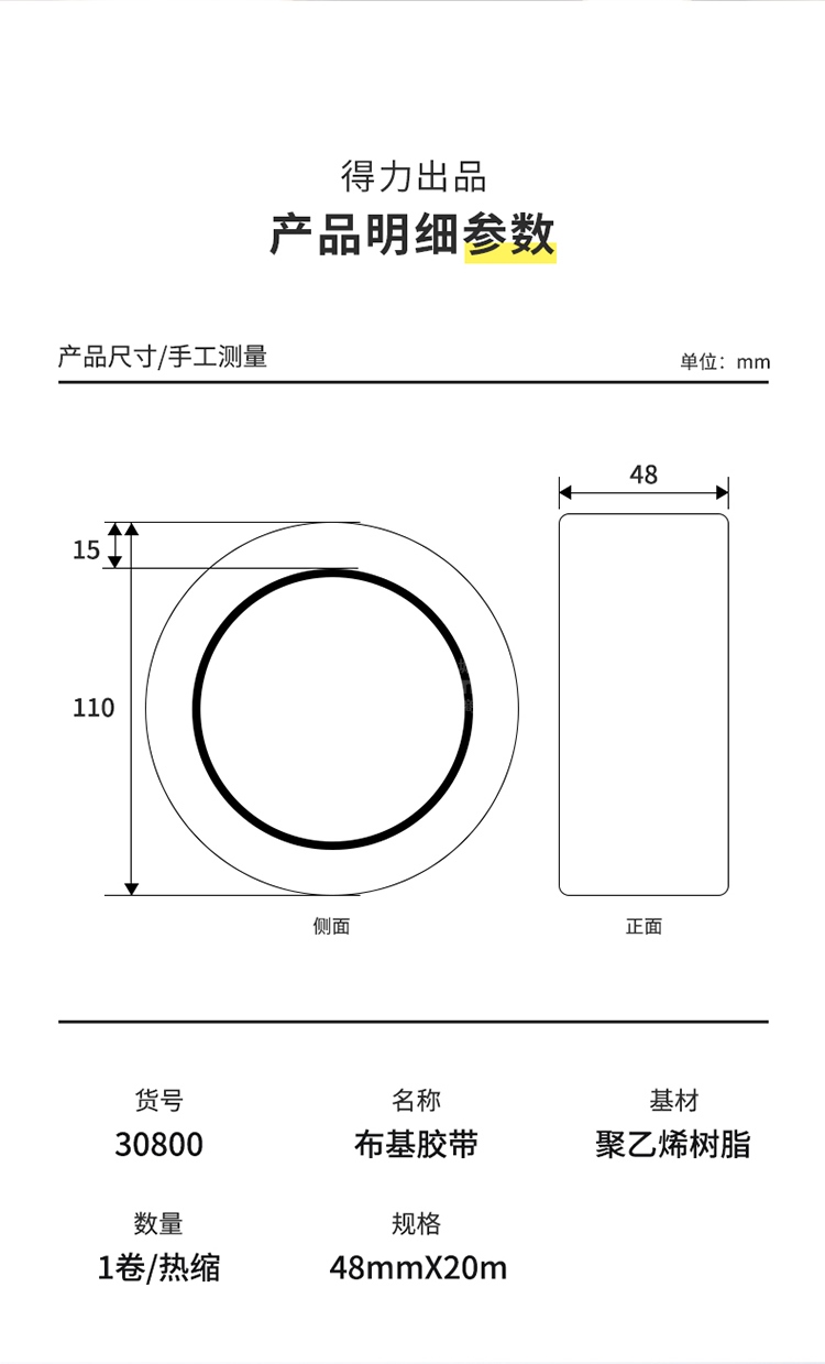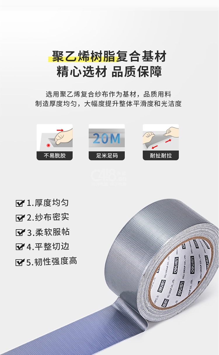 “deli/得力”No.30800 布基膠帶 單卷裝(銀色48mm*20m*230μm強(qiáng)粘力耐磨防水易手撕地毯固定管道密封260608)