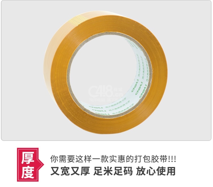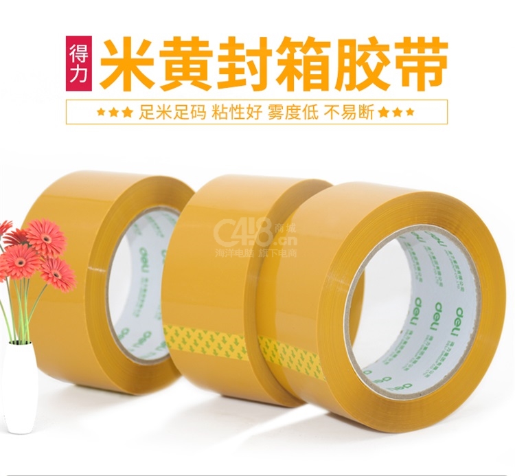 “deli/得力”No.30358 封箱膠帶 單筒裝(米黃色大卷膠帶快遞打包寬膠布60mm*60y 6卷/筒)