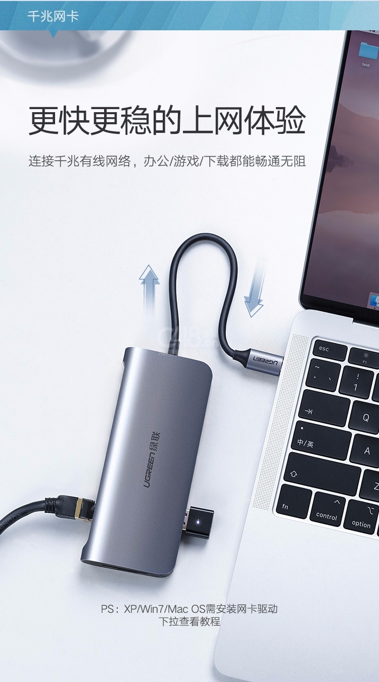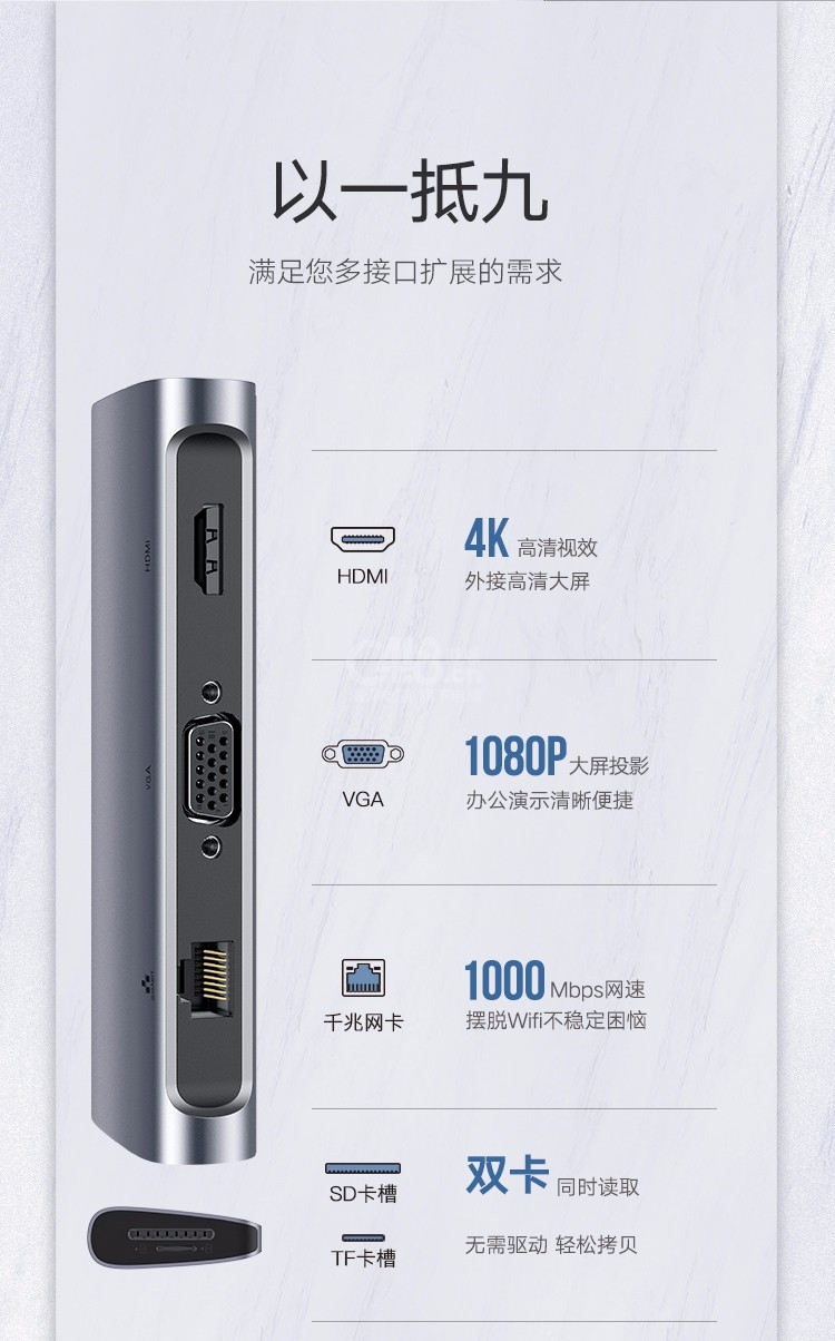 | 其它特性 | PD供電千兆網(wǎng)絡(luò) 手機(jī)拓展大屏4K高清 鋁合金外殼 |