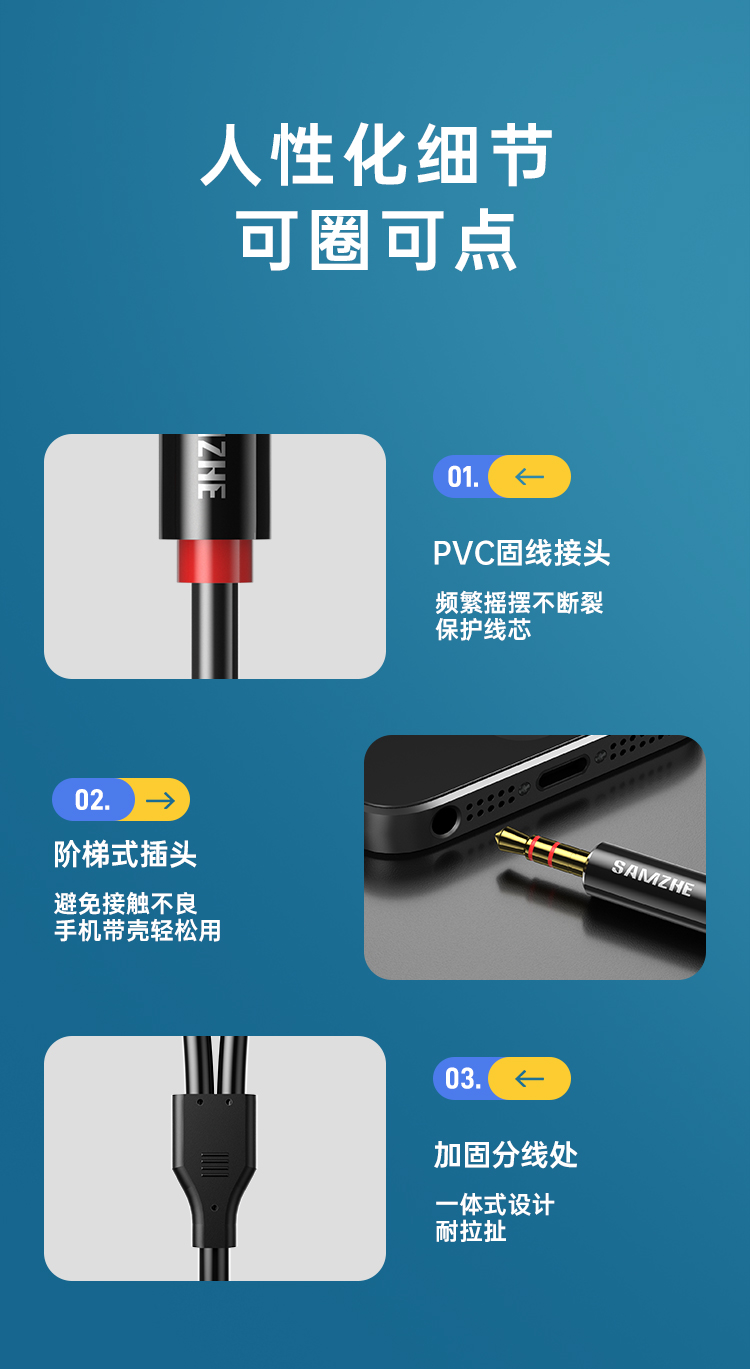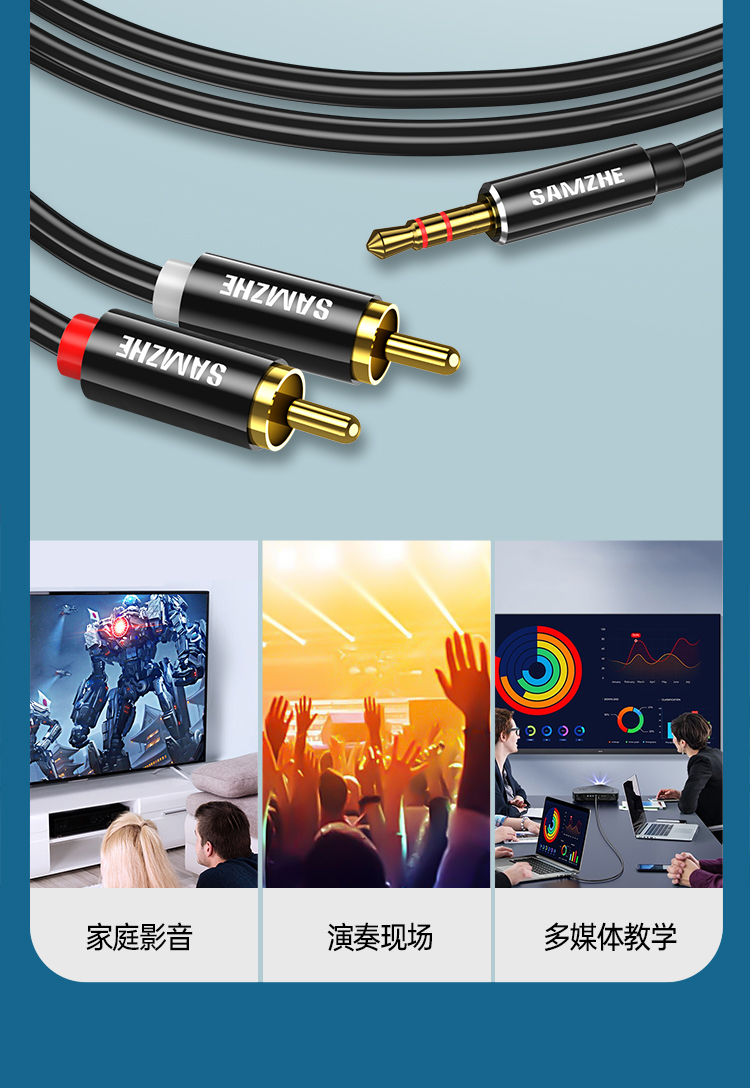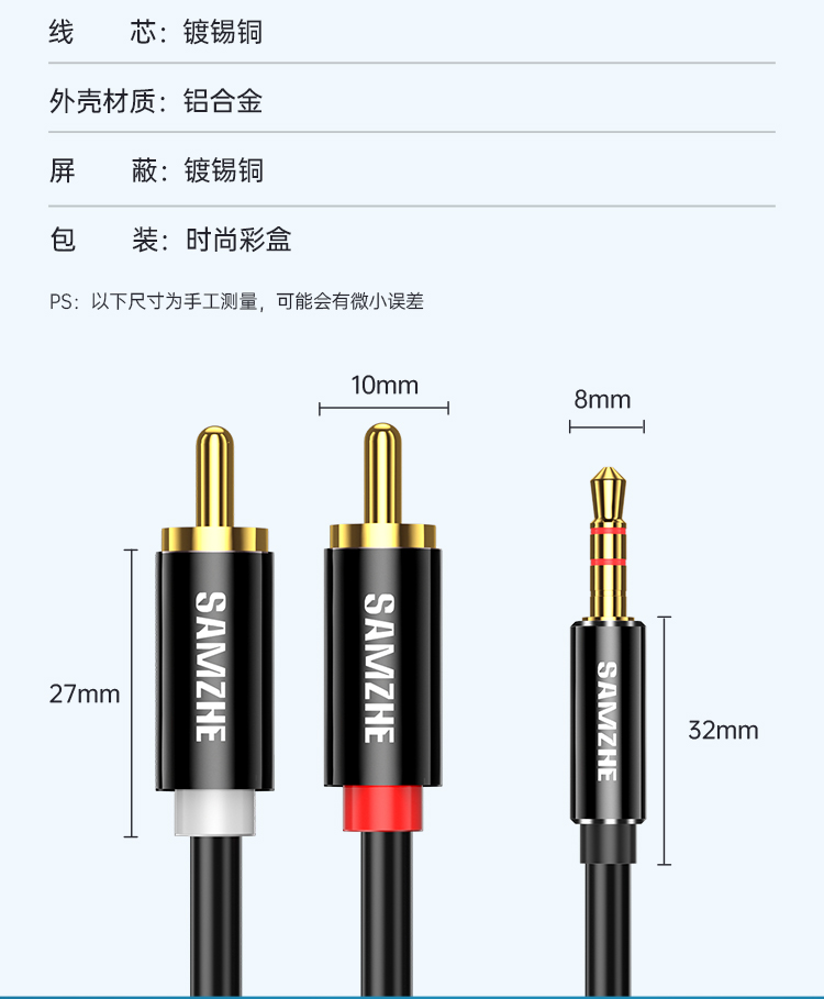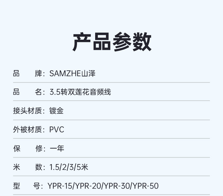 “SAMZHE/山澤”YPR-150 3.5轉(zhuǎn)雙蓮花音頻線 單條裝(一分二紅白2RCA連接線手機電腦電視連接音響箱功放轉(zhuǎn)換線15米)