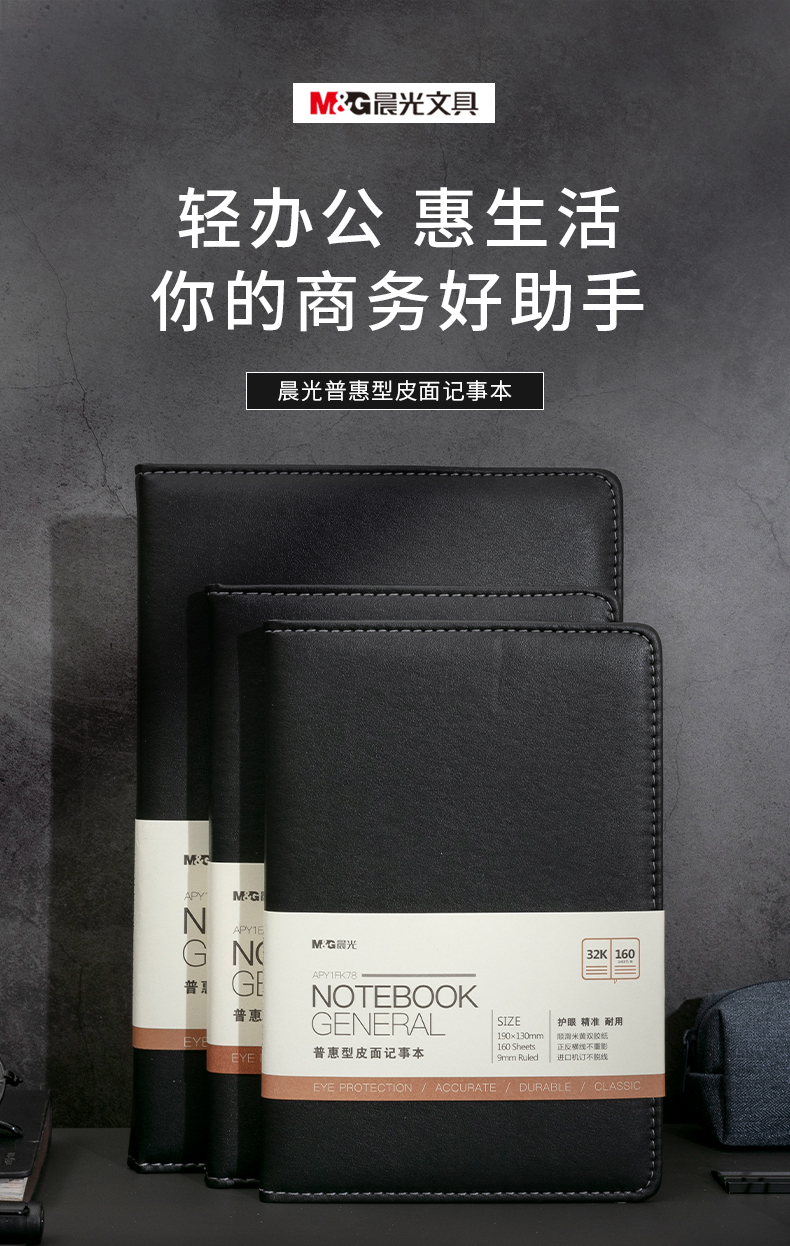 晨光(M&G)文具32K/160張黑色會(huì)議記錄皮面本 辦公筆記本 普惠型商務(wù)記事本子 單本裝APY1FK78