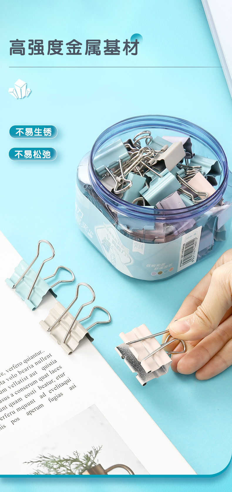晨光(M&G)文具12只50mm省力長尾夾票夾 1#彩色金屬燕尾夾 霽顏系列票據(jù)夾子 辦公用品ABS916Y5