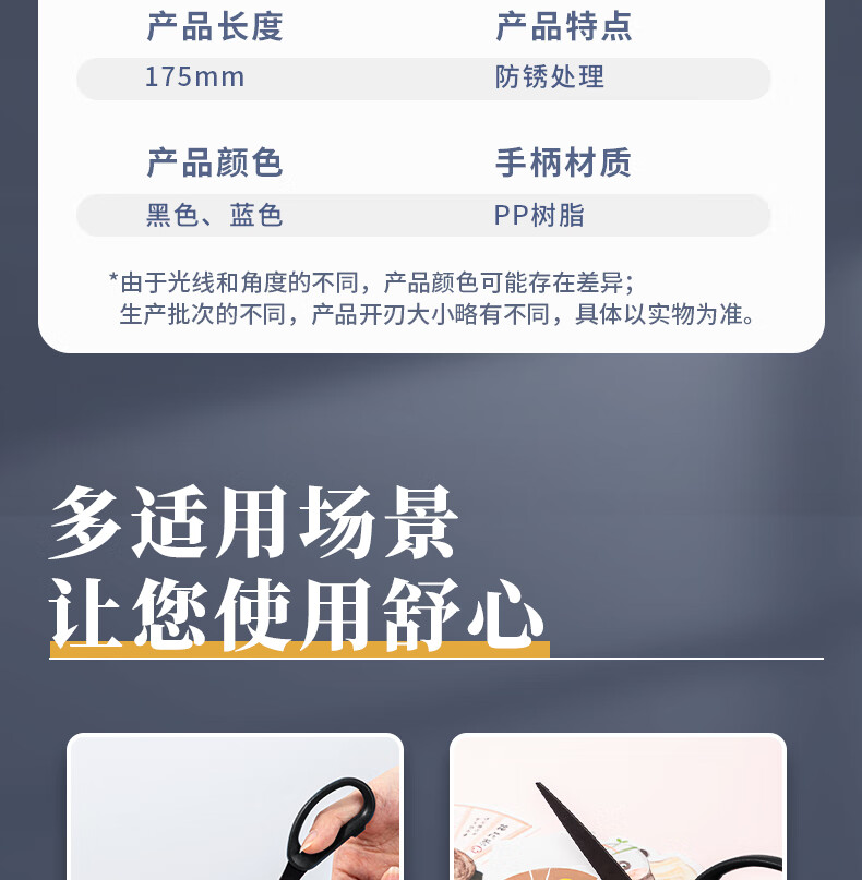 “deli/得力”No.77790 剪刀 單把裝(黑色175mm人機(jī)造型防銹處理)