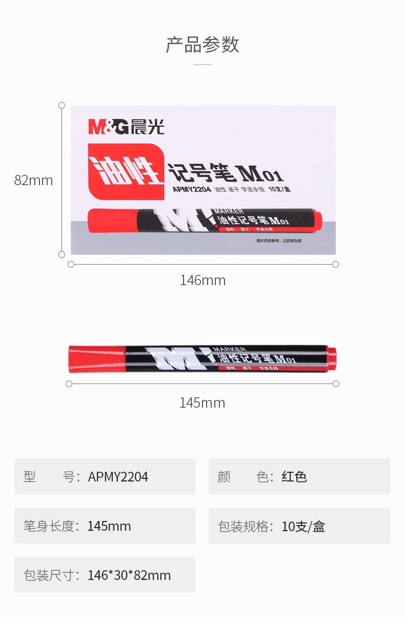 晨光(M&G)文具M(jìn)01單頭紅色記號(hào)筆 油性馬克筆 物流筆標(biāo)記大頭筆 10支/盒APMY2204