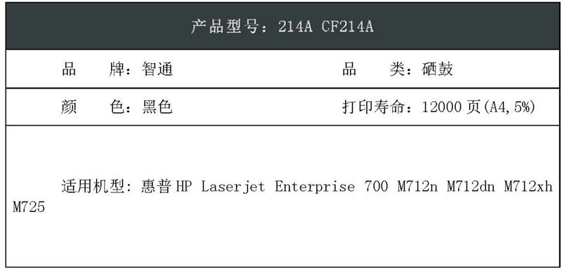 “ZT(kilter)/智通”214A CF214A 環(huán)保型激光碳粉盒 單個(gè)裝(黑色硒鼓帶芯片ZT-CF214A適用HP LaserJet Enterprise 700m 712n M712dn M712xh M725)