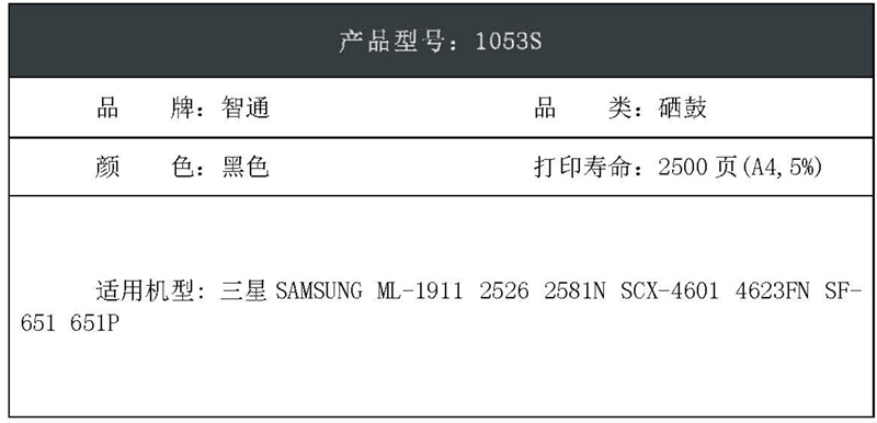“ZT(kilter)/智通”1053S PLUS 環(huán)保型激光碳粉盒 單個(gè)裝(黑色硒鼓帶芯片SX-D1053S適用Samsung ML-1911 2526 2581N SCX-4601 4623FN SF-651 651P)
