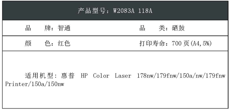 “ZT(kilter)/智通”W2083A 118A PLUS 環(huán)保型激光碳粉盒 單個(gè)裝(紅色硒鼓帶芯片適用惠普HP Color Laser 178nw 179fnw 150a nw 179fnw ZT-PLUSW2083A-M-RE)