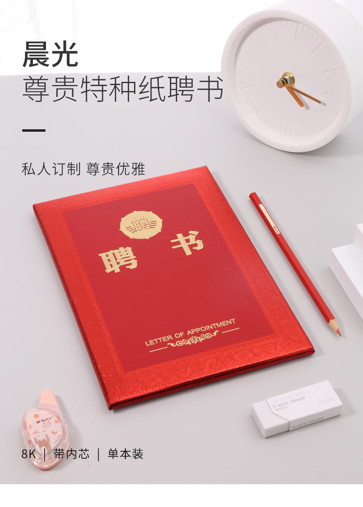 “M&G/晨光”ASC99318 聘書 單本裝(紅色辦公會(huì)議頒獎(jiǎng)尊貴特種紙8K含芯257mm*178mm內(nèi)芯型號:ASC99322)
