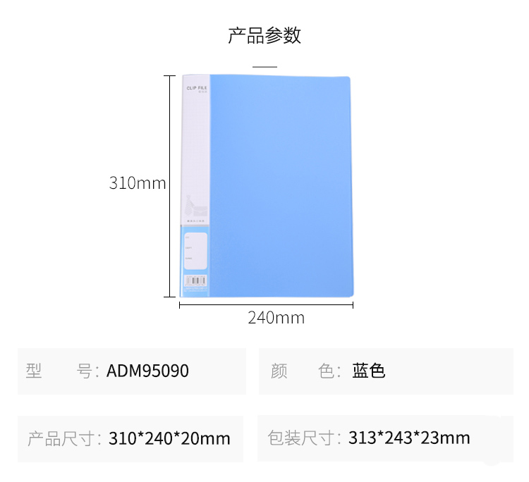 “M&G/晨光”ADM95090 新銳派文件夾 單個裝(藍(lán)色A4資料夾長押夾辦公資料整理收納夾含內(nèi)袋ADM95090B)