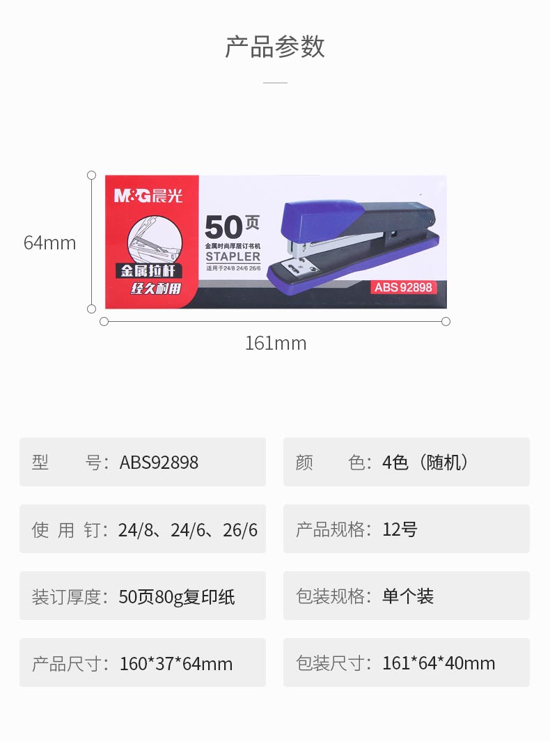 “M&G/晨光”ABS92898 訂書機(jī) 單個(gè)裝(顏色隨機(jī)文具12號(hào)厚層50頁(yè)商務(wù)省力型訂書器耐用辦公用品)