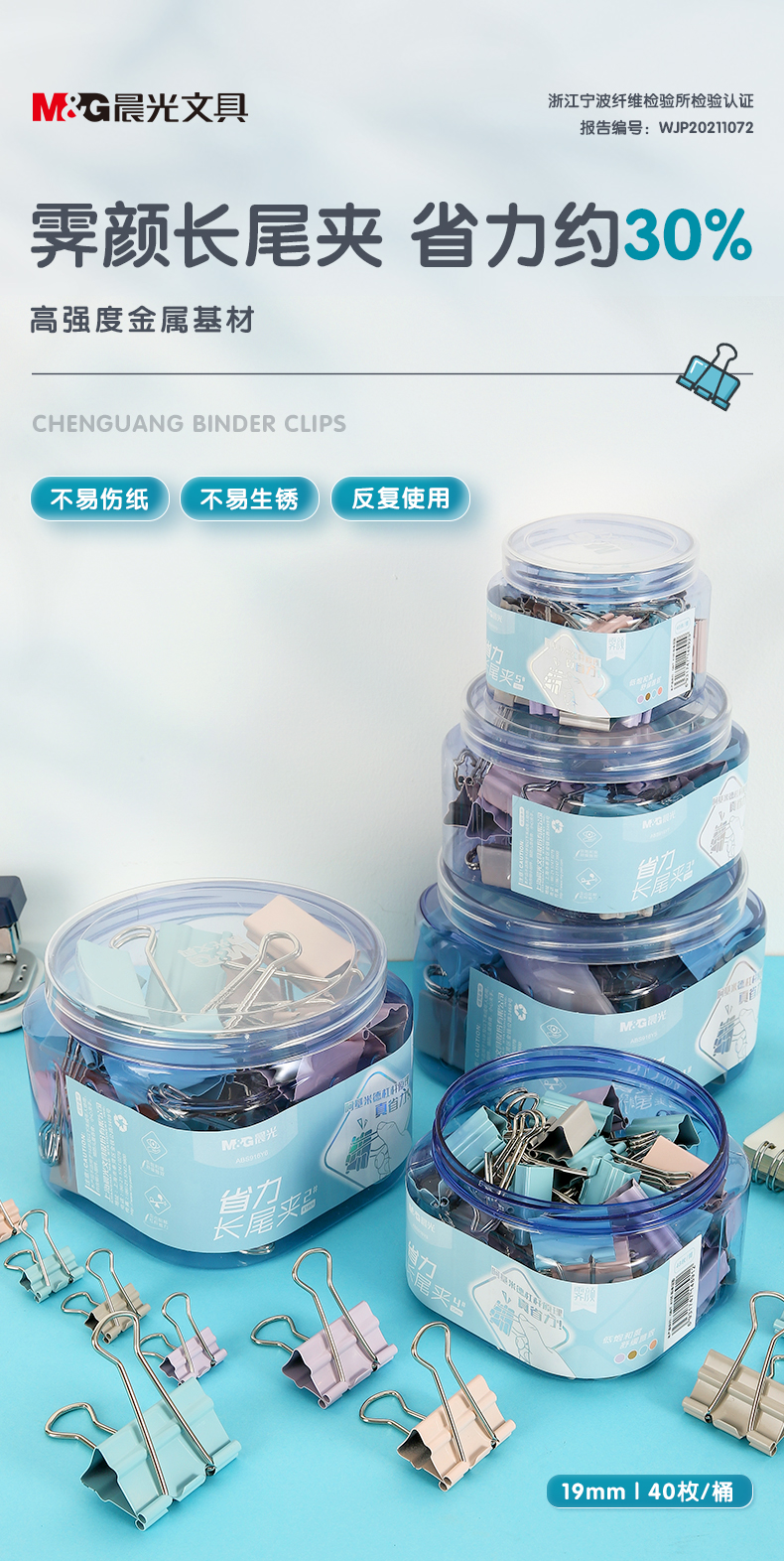 “M&G/晨光”ABS916Y9 省力長(zhǎng)尾夾票夾 單筒裝(彩色文具19mm 5號(hào)金屬燕尾夾莫蘭迪系列票據(jù)夾子辦公用品40只/筒)