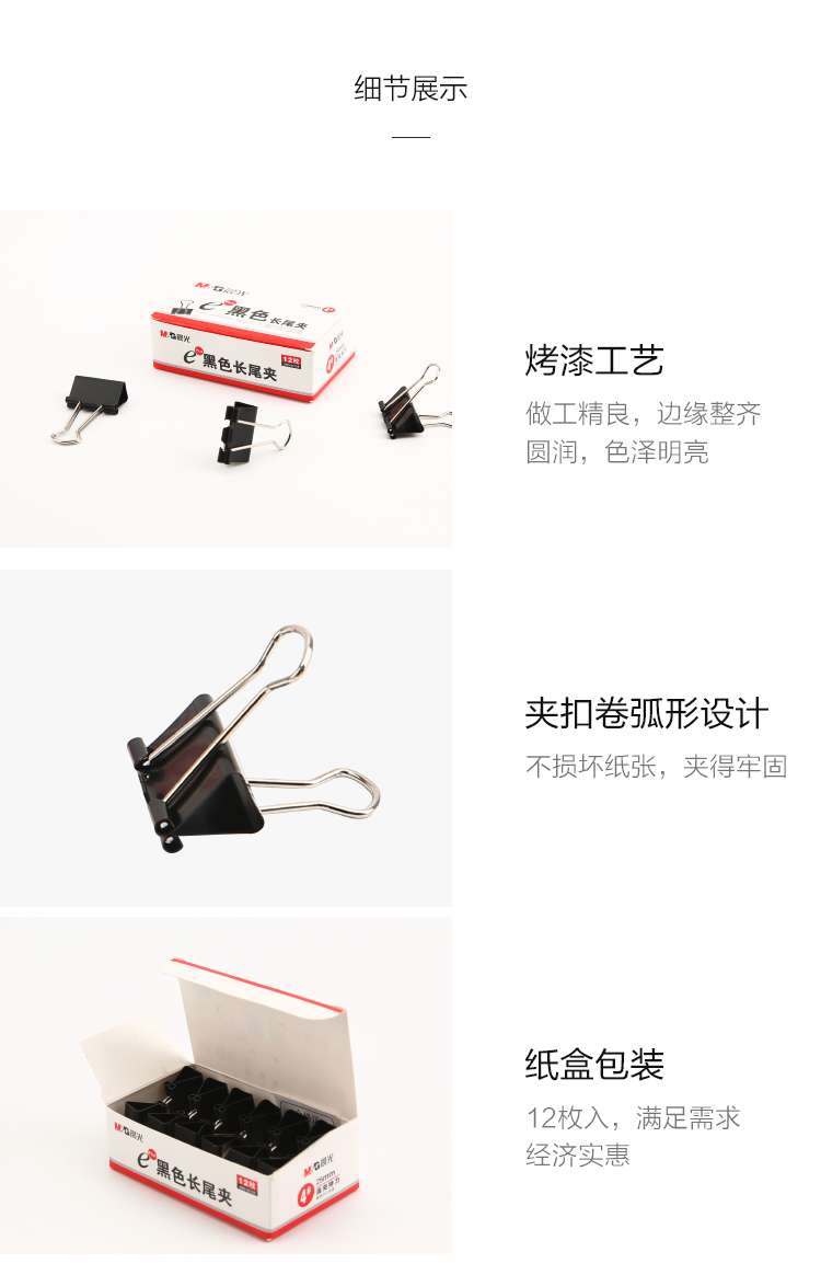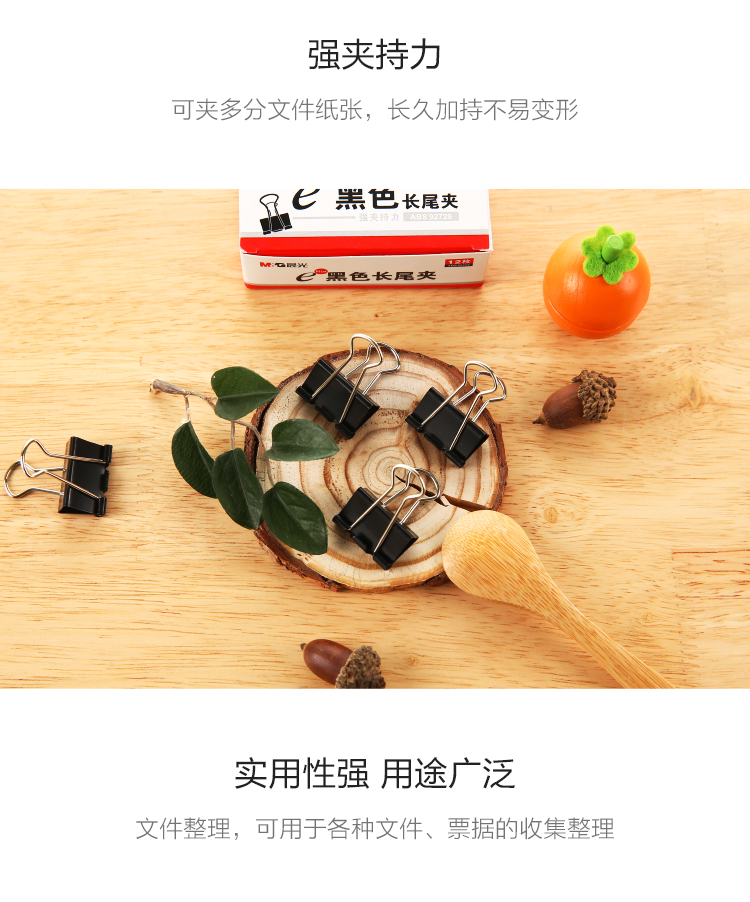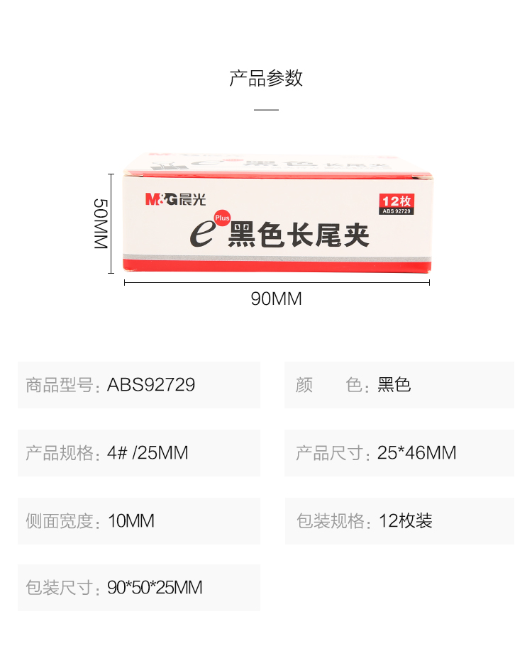 “M&G/晨光”ABS92729 長尾夾 單盒裝(黑色文具4號25mm辦公用品金屬票據(jù)夾E-plus系列燕尾夾12只/盒)