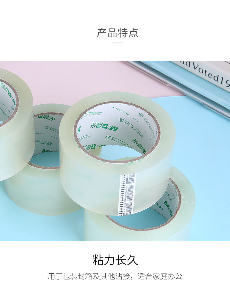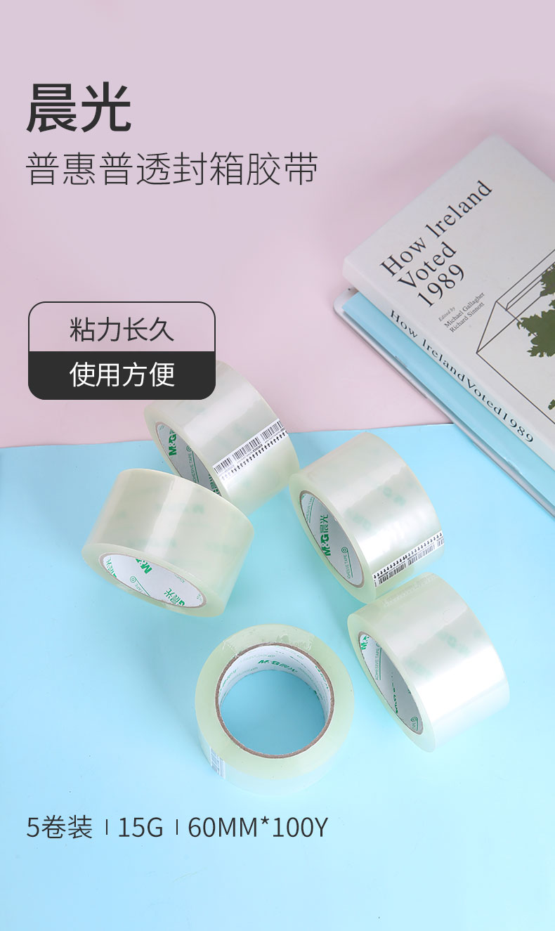 “M&G/晨光”AJD95790 封箱膠帶 單筒裝(透明文具打包大膠布60mm*100y*45um加寬辦公用品91.4米/卷5卷/筒)