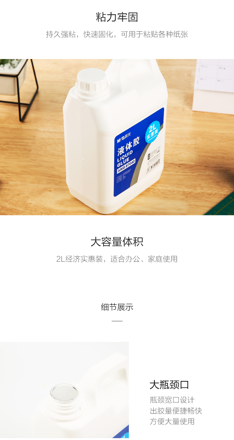 “M&G/晨光”AWG97040 液體膠 單桶裝(透明文具2L/PVAL大容量耐用膠水經(jīng)濟(jì)實惠裝手工黏膠)