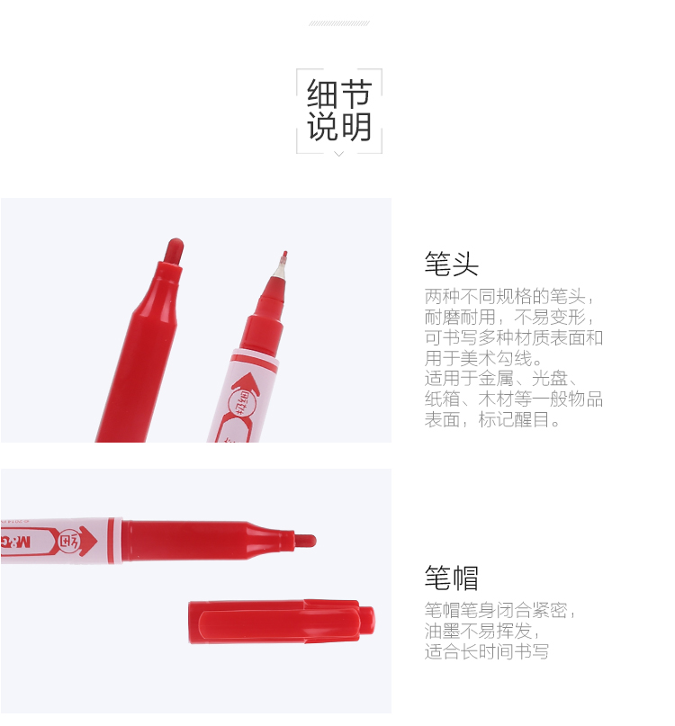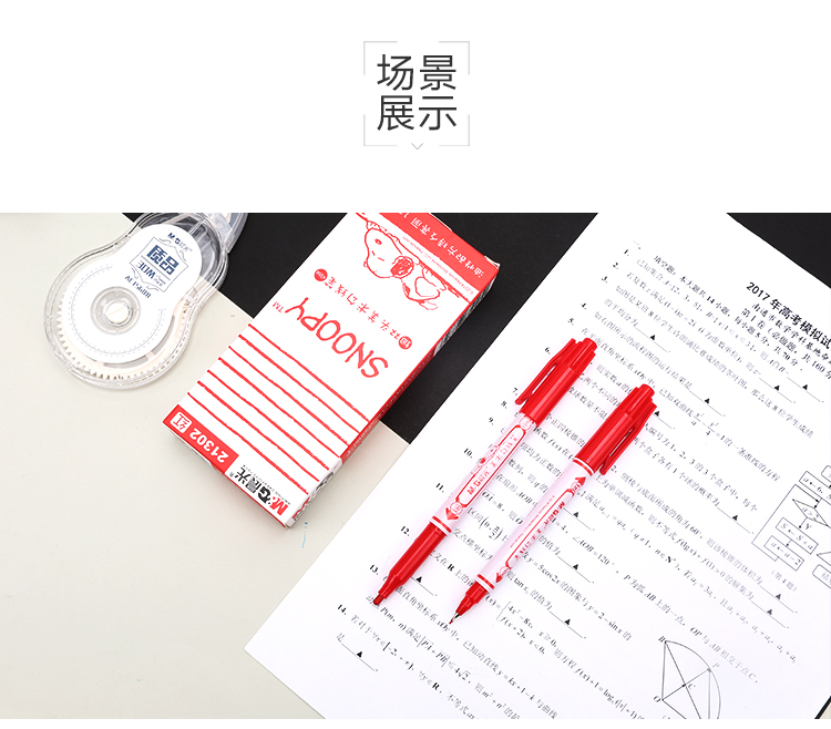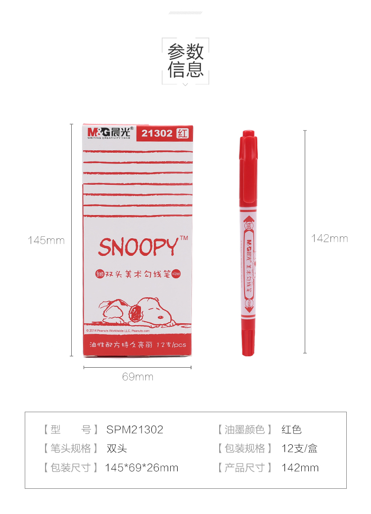 晨光(M&G)史努比雙頭美術勾線筆倉庫油性記號筆 12支裝 紅色 辦公文具 SPM21302