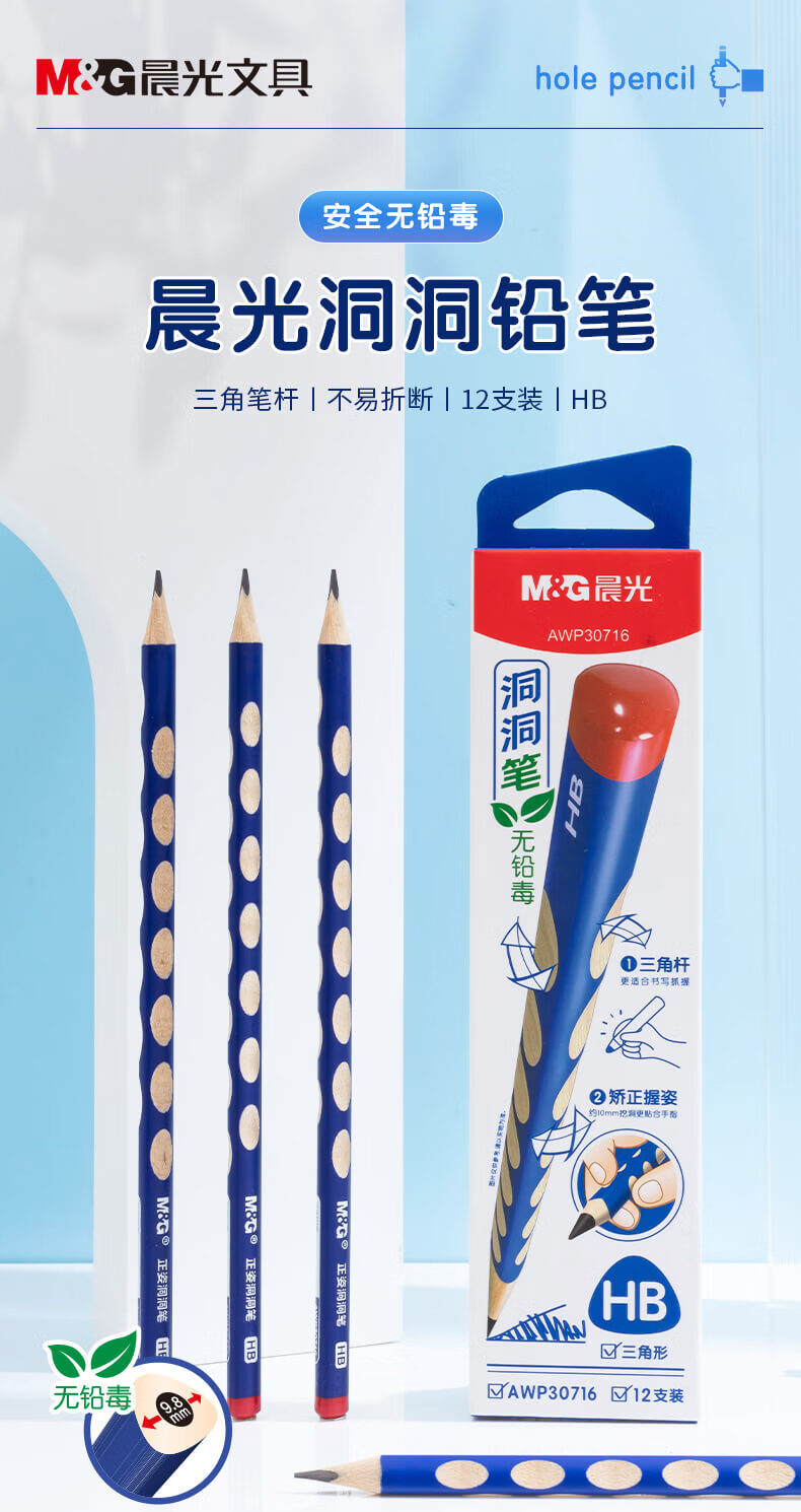 晨光(M&G)文具HB洞洞鉛筆 三角木桿鉛筆 學(xué)生正姿沾頂木質(zhì)鉛筆 12支/盒AWP30716