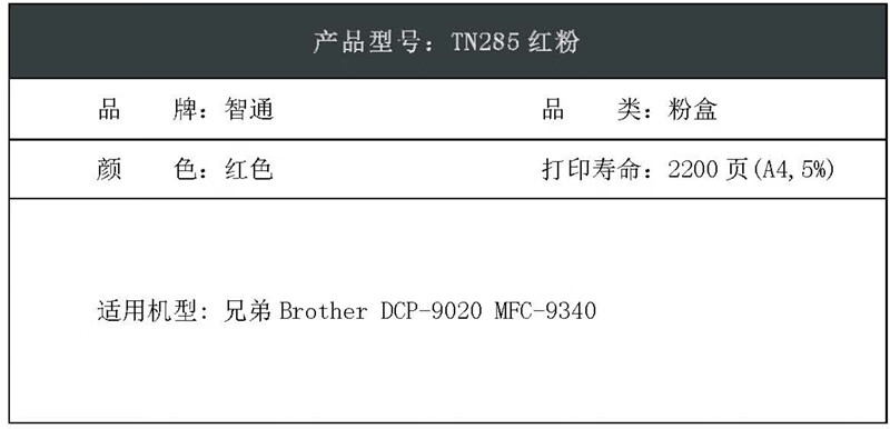 智通ZT TN285紅粉硒鼓 適用于:兄弟Brother DCP-9020 MFC-9340
