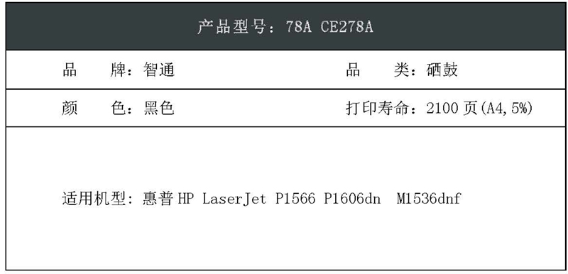 “ZT(kilter)/智通”78A CE278A 環(huán)保型激光碳粉盒 單個(gè)裝(黑色硒鼓帶芯片ZT-CE278A適用惠普HP LaserJet P1566 P1606dn M1536dnf)
