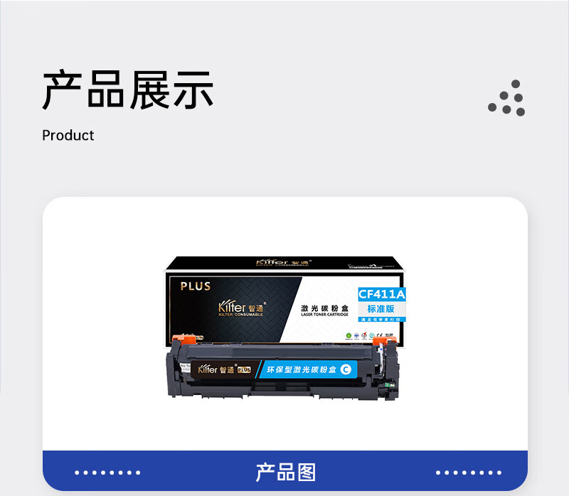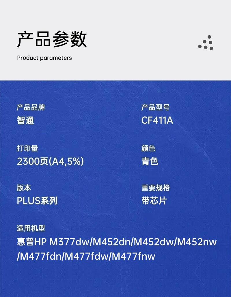 “ZT(kilter)/智通”CF411A 標準版 PLUS 環(huán)保型激光碳粉盒 單個裝(青色硒鼓帶芯片適用惠普HP M377dw M452dn M452dw M452nw M477fdn M477fdw M477fnw)