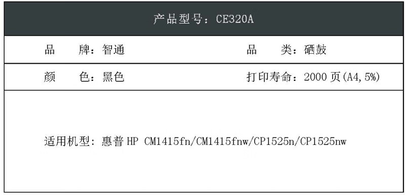 “ZT(kilter)/智通”CE320A PLUS 環(huán)保型激光碳粉盒 單個(gè)裝(黑色硒鼓帶芯片適用惠普HP CM1415fn CM1415fnw CP1525n CP1525nw)