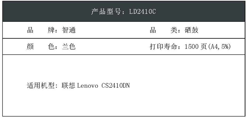 智通(ZT)LD2410C 硒鼓 青色 適用聯(lián)想Lenovo CS2410DN
