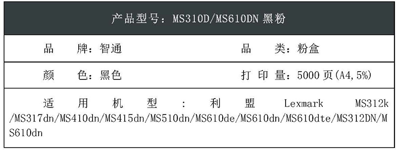 智通(ZT)MS310D/MS610DN 粉盒 黑色 適用利盟Lexmark MS312k /MS317dn/MS410dn/MS415dn/MS510dn/MS610de/MS610dn/MS610dte/MS312DN/MS610dn