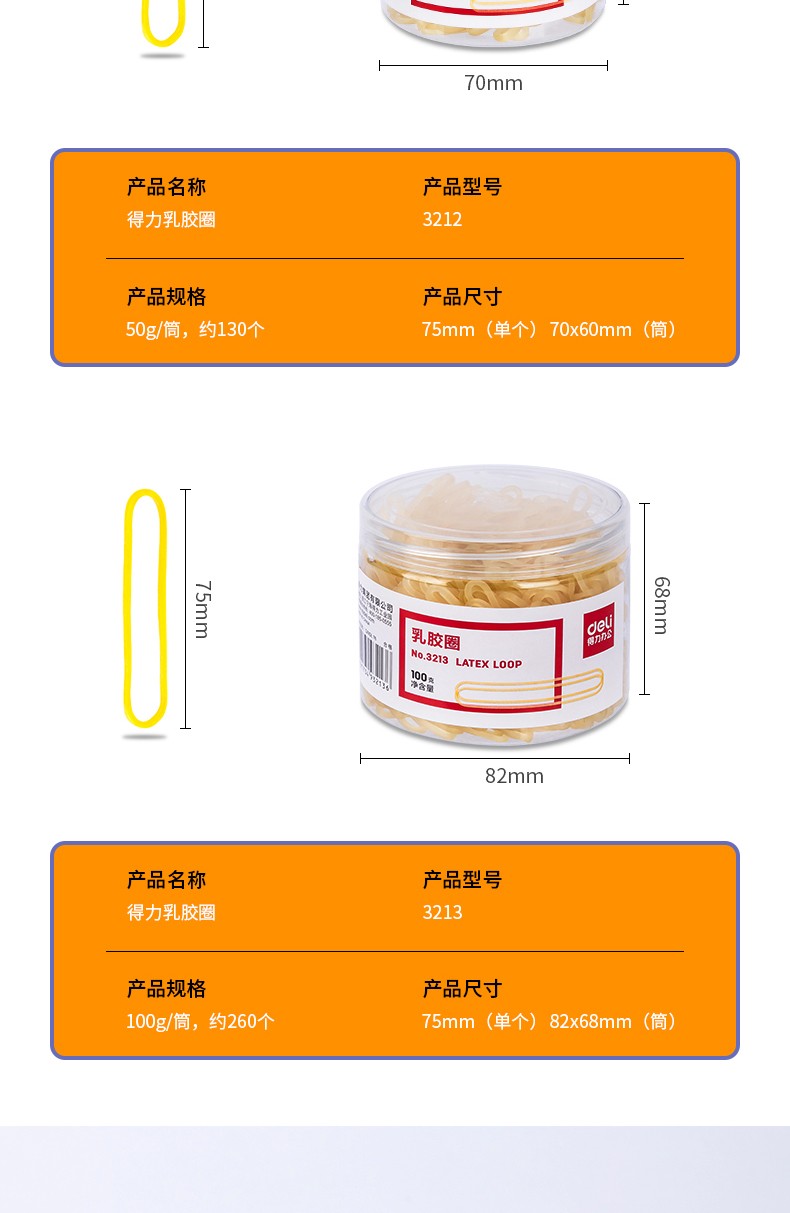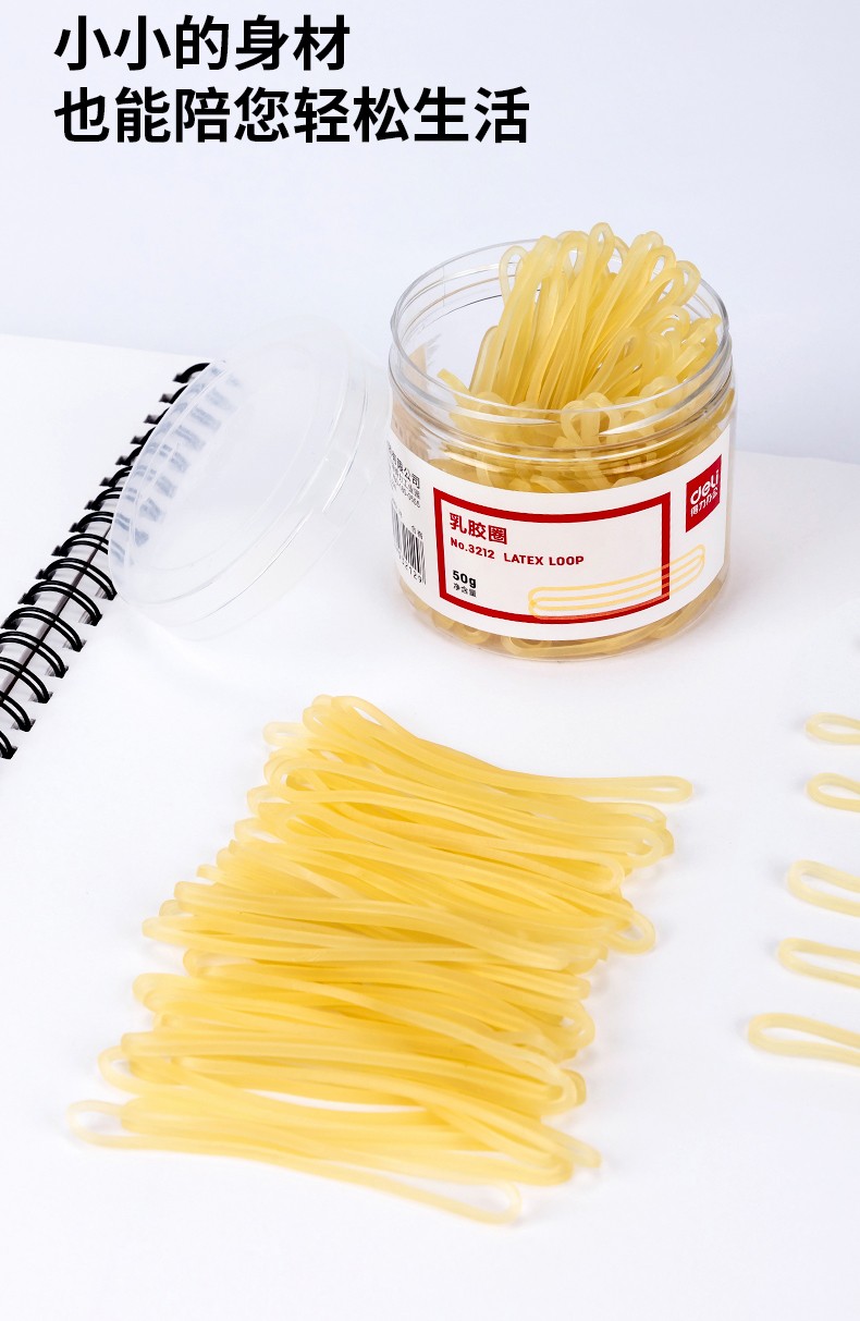 “deli/得力”NO.3212 乳膠圈 1筒裝(微黃色橡皮筋橡皮圈皮套捆扎膠圈50g/包)
