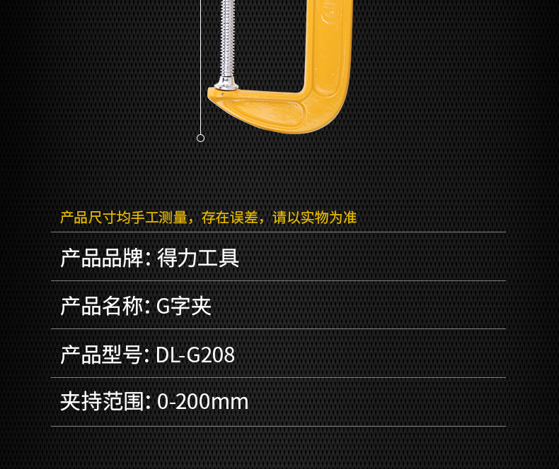 “deli/得力”DL-G208 G字夾 單把裝(8英寸木工夾子加厚型快速夾具G型定夾工具)