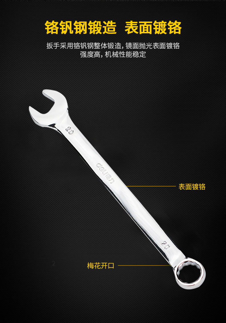 “deli/得力”DL130013 兩用扳手 單把裝(鏡面13mm多功能開口梅花雙頭呆扳手)