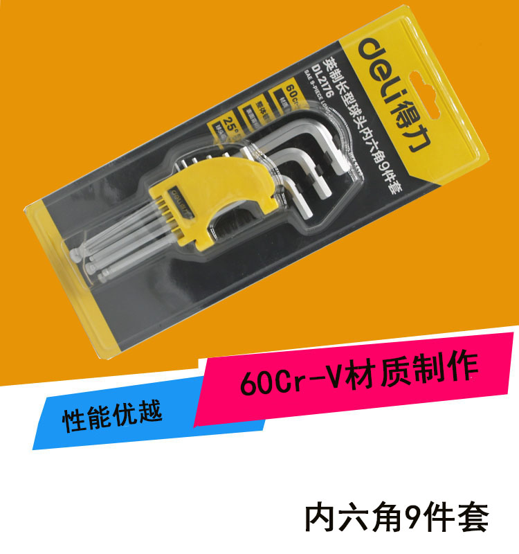 “deli/得力”DL2176 英制長型球頭內(nèi)六角9件套 單套裝(扳手套裝)