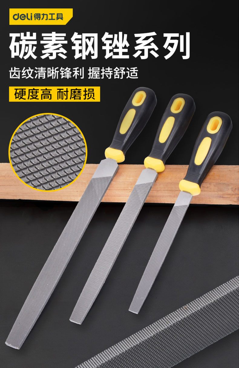 “deli/得力”DL68110 中齒圓銼 單把裝(黃黑10英寸銼刀打磨工具套裝合金木工矬中齒半圓鉗工挫鋼銼)