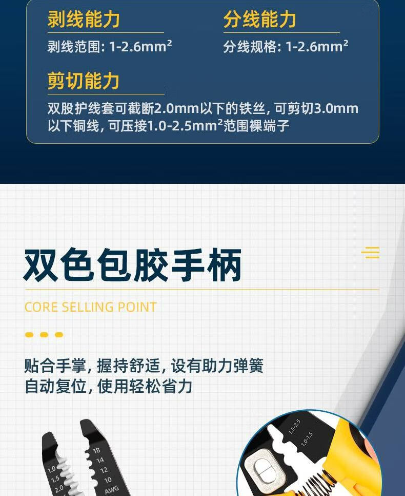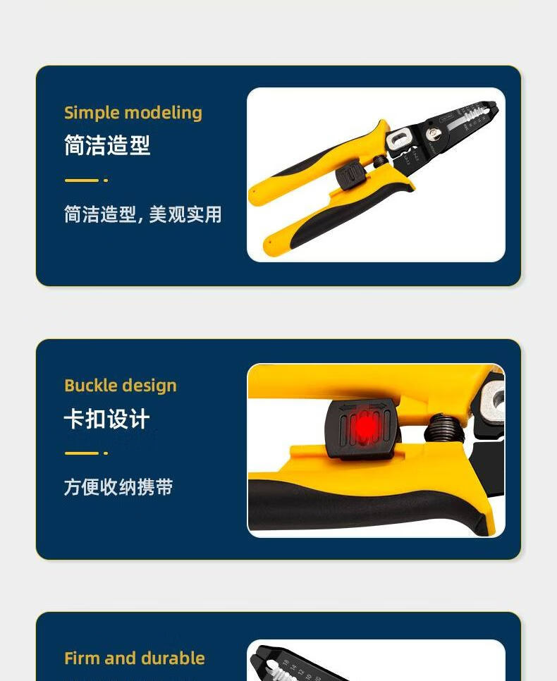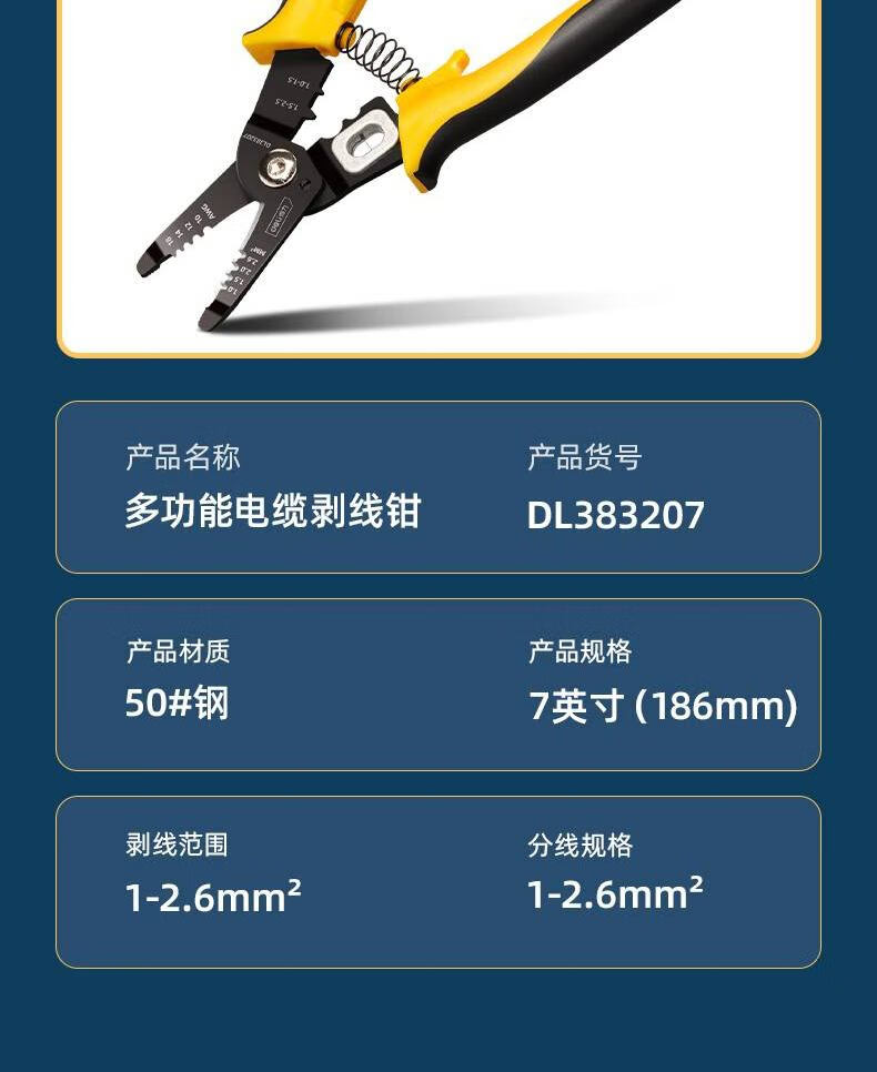 “deli/得力”DL383207 多功能電纜剝線鉗 單把裝(電工電子剝線器撥線鉗壓接壓線鉗剪光纖電纜扒皮鉗)