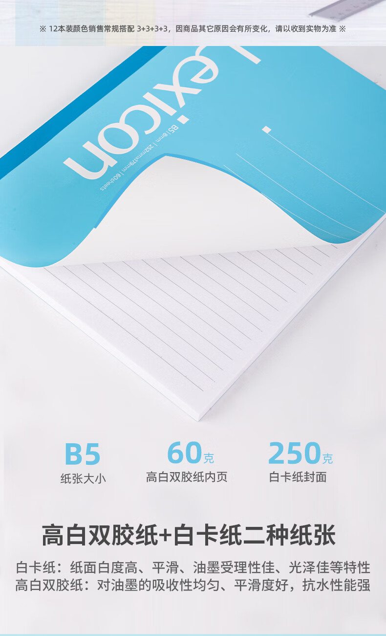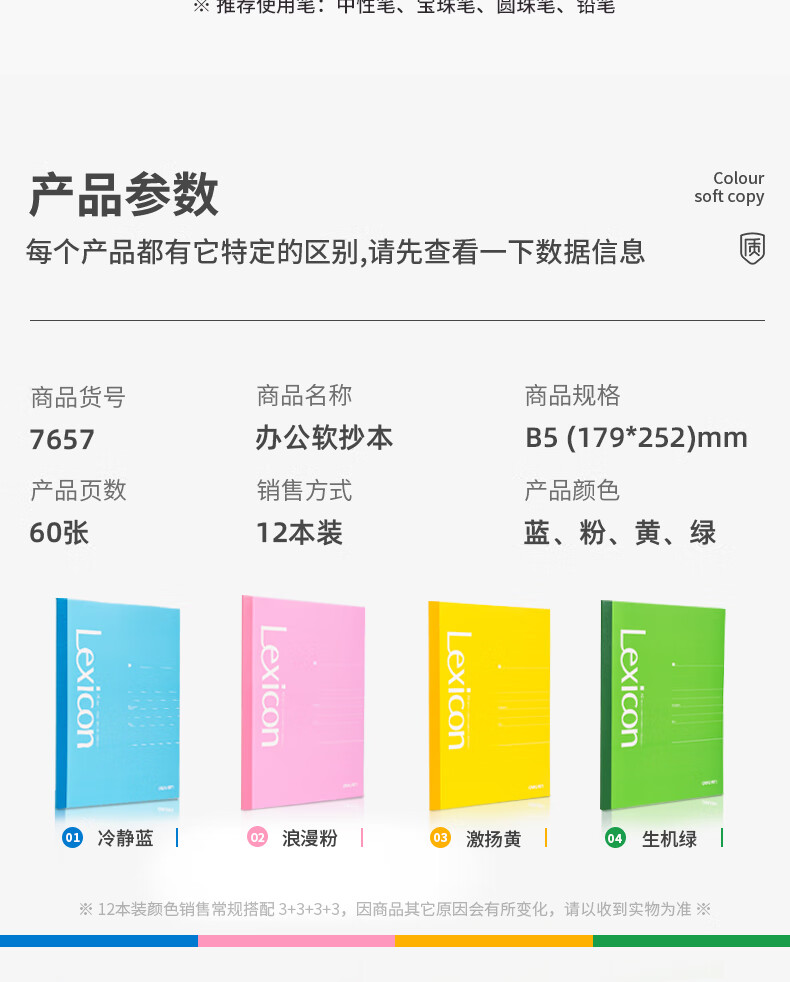 “deli/得力”No.7657 無線裝訂本 單本裝(混色B5/60張軟抄本記事本工作筆記本子日記本文具辦公用品12本/包)