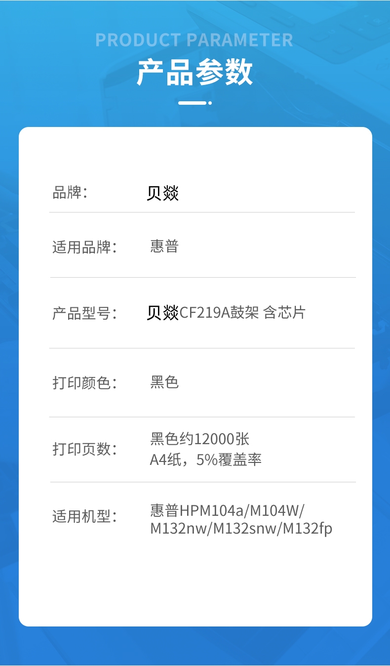 “貝燚”CF219A 激光打印機(jī)硒鼓架 單個(gè)裝(黑色BY-CF219A-FD帶芯片適用于惠普HP M104a/M104w/M132a/M132fn/M132fp/M132fw/M132nw/M132snw)