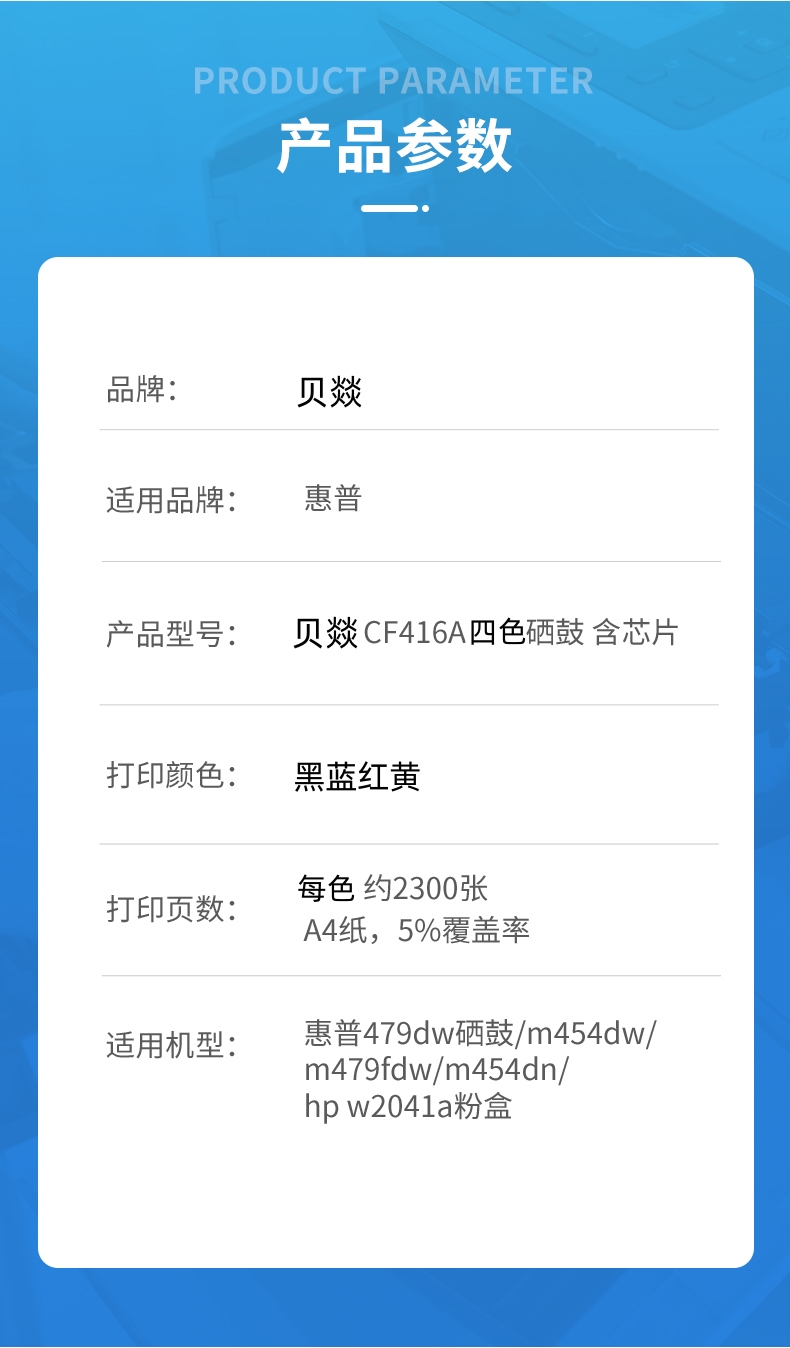 “貝燚”CF416A 專業(yè)環(huán)保激光硒鼓 單個裝(藍色BY-CF416-C帶芯片適用于惠普479dw/m454dw/m479fdw/m454dn/hp w2040a粉盒)
