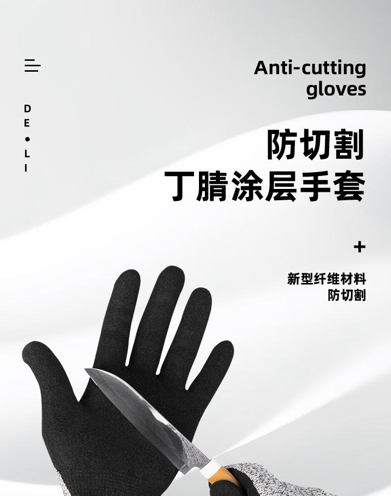“deli/得力”DL521041 防切割丁腈涂層手套 單副裝(L碼纖維園藝工作勞保應(yīng)急常備)