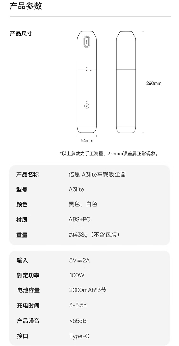 “Baseus/倍思”VCAQ050002 吸塵器 單臺(tái)裝(A3lite車載車用手持大吸力汽車小型車內(nèi)無(wú)線)
