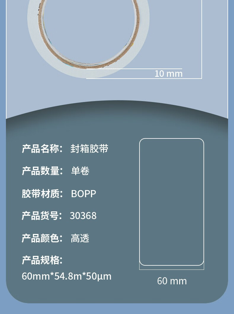 “deli/得力”No.30368 封箱膠帶 單卷裝(高透強(qiáng)力寬膠帶打包封口膠布60mm*60y*50um 6卷/筒)