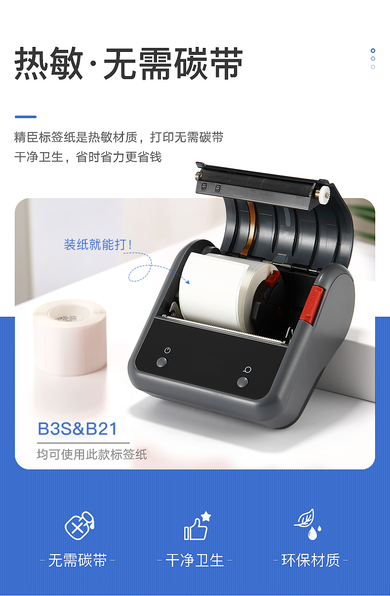 “JENG CHEN/精臣”A2A18091701 熱敏標(biāo)簽紙 單卷裝(白色45*20*320張打印紙三防熱敏紙服裝吊牌商品價格食品不干膠貼紙)