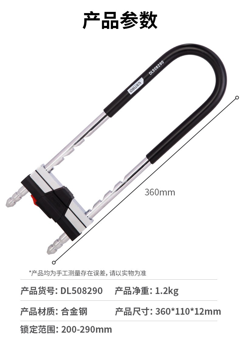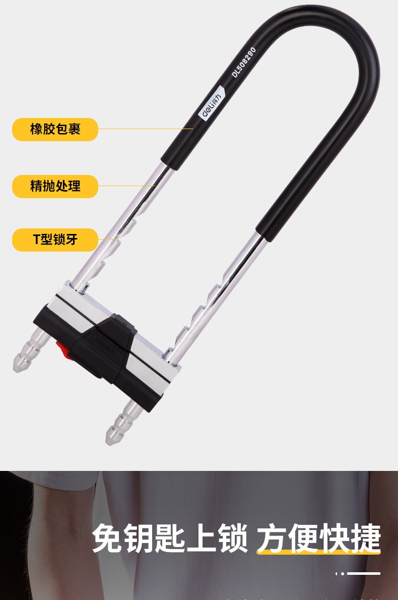 “deli/得力”DL508390 U型鎖 單把裝(高強(qiáng)度防盜高強(qiáng)度防盜雙開門鎖玻璃門鎖自行車鎖)