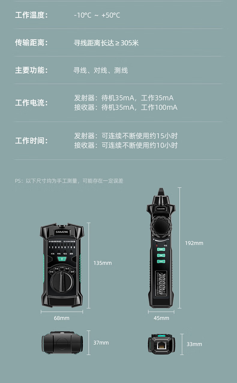 “SAMZHE/山澤”SZ-D266 多功能線纜尋線儀 1套裝(60V耐壓款電話網(wǎng)絡(luò)測線巡線儀POE尋線套裝抗干擾交換機尋線)